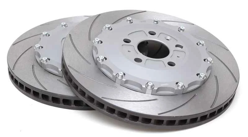 写真のタイプはデュアルプレートディスクで、センタープレートとアウタープレートが別体になっています。センタープレートはアルミ合金製で軽量化を実現していますが、フローティング構造ではなく、直径355mm以下のディスクに適しています。次にブレーキディスクです。ブレーキ力においてもう一つ重要な役割を果たします。ブレーキ力はブレーキパッドとブレーキディスクの「擦れ」によって発生するため、ブレーキディスク自体の硬度もブレーキ力に影響を与えます。柔らかいブレーキディスクと高摩擦ブレーキパッドの組み合わせは、硬いブレーキディスクと低摩擦ブレーキパッドの組み合わせよりも、確実に優れた制動力を発揮します。一般的に、純正ブレーキディスクの硬度は比較的柔らかいため、純正ブレーキディスクに社外品のブレーキパッドを使用する方が、より適切なアプローチとなります。