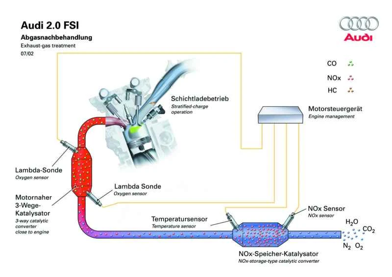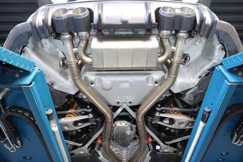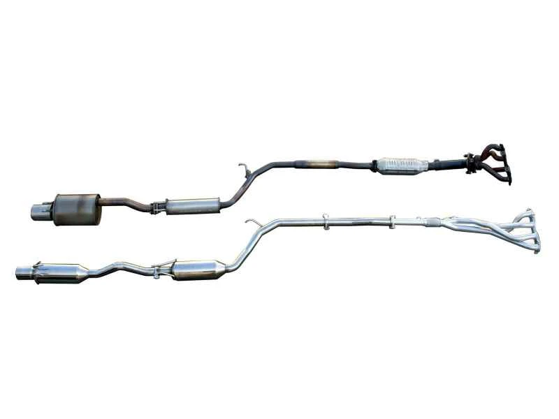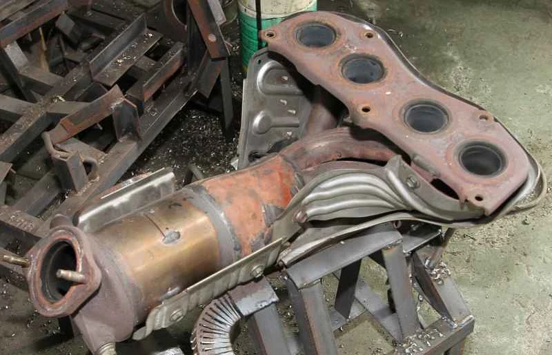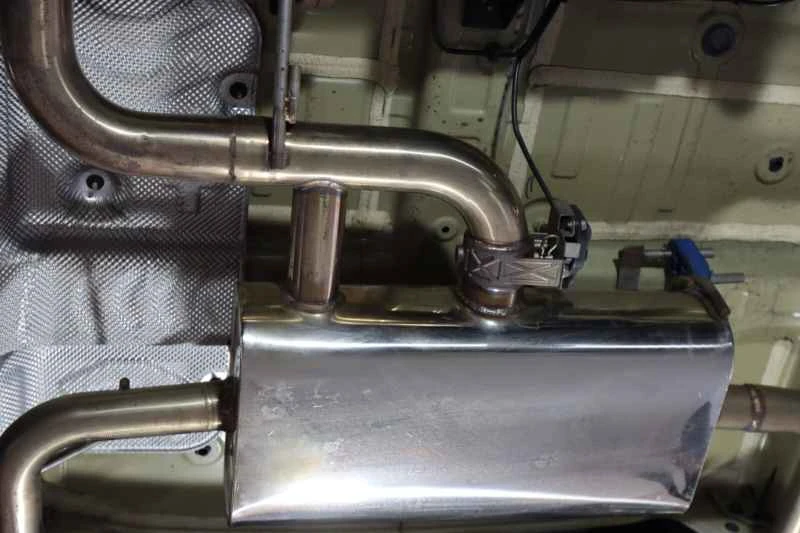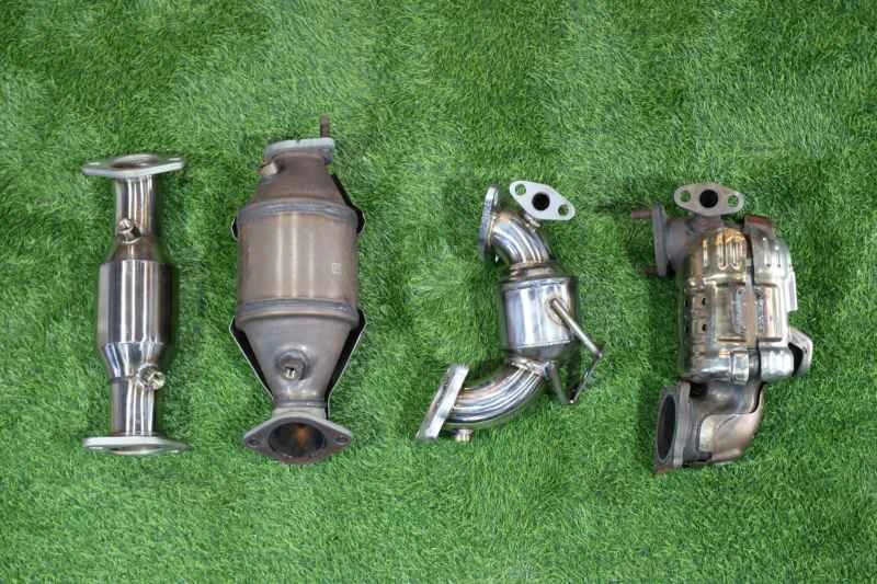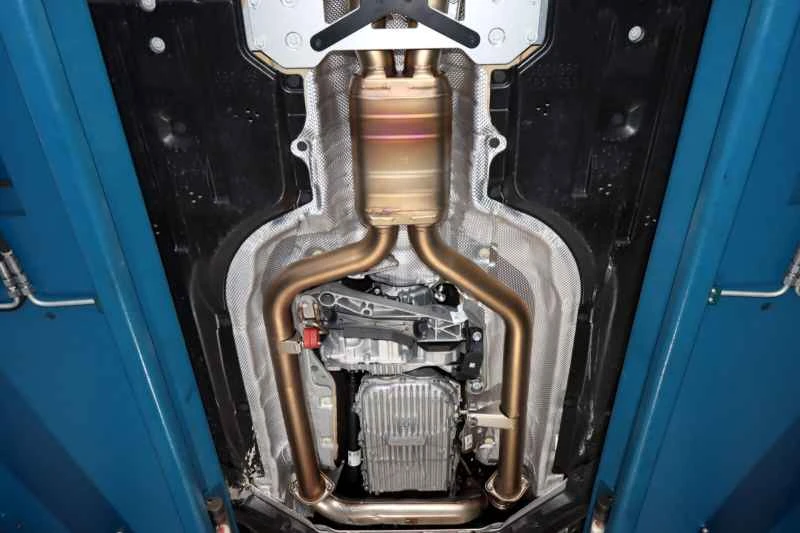純正の中間セクション排気管には、かなり大きな触媒コンバーターとマフラーが装備されています。これらはどちらも排気抵抗の原因となるため、多くのアフターマーケットの中間セクション排気管は、これら2つのコンポーネントに対応するように改造されています。 排気管の中間部にある触媒コンバーターは排気効率を阻害する要因となっていますが、最近の車両では、コントロールランプが点灯して燃費が悪化するため、触媒コンバーターを取り外すことができない場合があります。そこで、金属製のレーシング触媒コンバーターが開発されました。内部構造は、より緩やかな金属メッシュプレート構造です。それでも若干の閉塞は生じますが、燃費向上と性能向上のバランスが取れています。