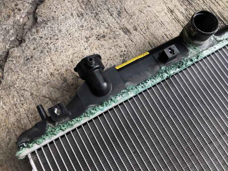 ラジエーターのフィンと上下のシートの間にはゴム製のシーリングが取り付けられています。長期間高圧にさらされると、ゴム製のシーリングは徐々に弾力性を失い、隙間が生じてラジエーターと上下のシートの間から水漏れが発生します。ひどい場合は、写真のようにスケールで覆われることもあります。錆や穴に加えて、水タンク内の上部プラスチックシートと下部プラスチックシートの接合部からも水漏れが発生することがあります。これは、元の水タンクがアルミ合金製のラジエーター本体とプラスチック製の上部・下部プラスチックシート設計を採用しているためです。ラジエーター本体と上部・下部シートは圧縮固定されており、その間にはゴム製のシーリングリングが設けられています。長時間の高圧により、シーリングリングは徐々に弾力性を失います。水温が下がると隙間が生じ、水タンク本体と上部・下部シートの間に水漏れが発生します。これは水タンクの自然な摩耗です。そのため、冷却液の漏れを早期に発見するために、月に一度は補助水タンク内の冷却液レベルを確認することをお勧めします。