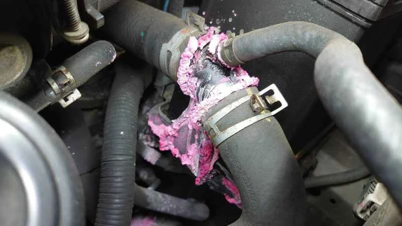 純正の水道管は主にゴムで作られており、経年劣化により弾力性が失われます。高温や長い上り坂を走行すると、高水温による高圧で冷却水管が破裂し、冷却水が漏れる可能性があります。1本の水道管が破裂している場合は、残りの水道管も同時に交換することをお勧めします。車両の冷却システムが正常に機能していれば、大きな問題は発生しません。しかし、冷却システムの効率が悪いと、夏の暑い日や長い上り坂などで水温が上昇し、冷却水ホースが高圧で破裂する可能性があります。冷却水が漏れると、エンジンがオーバーヒートして焼き付きを起こす可能性が非常に高く、大規模なオーバーホールとエンジン分解による修理が必要になります。