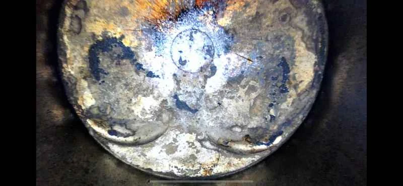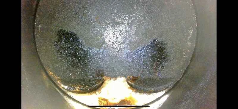 内視鏡検査の結果、洗浄前はピストン上部に大量のカーボン堆積物が堆積していたことが確認されました。洗浄後はカーボン堆積物の多くが除去されています。ピストン表面に多少の斑点状の色がついていますが、これは正常です。