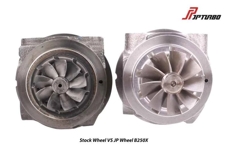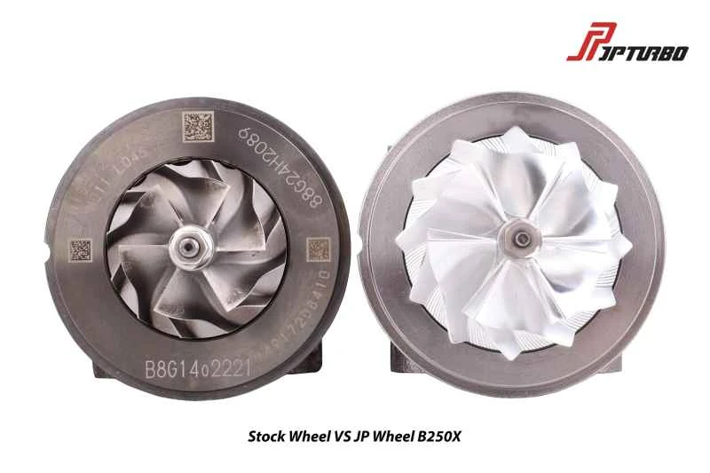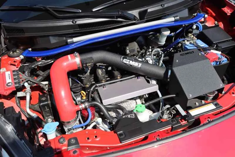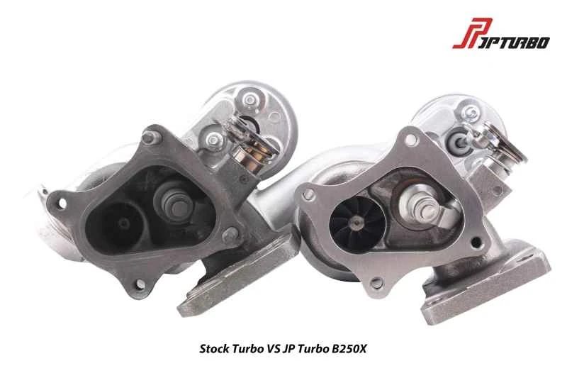 このターボチャージャーは、JPターボB250X大型ターボチャージャーで、多くのスイフトスポーツモデルで人気のアップグレードキットです。純正ターボチャージャーよりも吸排気ブレード径が大きく、シャフトには軽量なボールベアリングを採用することで、低速時のエンジンレスポンスが向上しています。理論上は、エンジンからの排気ガスがターボチャージャーを駆動するのに十分な量であれば、ターボチャージャーの大型化とブースト圧の上昇がエンジン効率の向上に効果的です。しかし、現実には、ターボチャージャー付きエンジンは高温、高圧、高摩擦といった課題に直面します。ターボチャージャー改造の最も重要な前提条件は、エンジンが低中速域で十分なトルクを発生し、高回転域で最大の馬力を発揮できるようにすることです。価格が最優先事項でなければ、これらの条件は重要ではありません。オーナーが洗練性、スムーズさ、燃費を優先する場合、ターボチャージャーのサイズ、空燃比、ブースト圧は控えめに低く設定する必要があります。しかし、これは強力な出力を保証するものではありません。目標とするパフォーマンスに挑戦したい場合は、空燃比の高いターボチャージャーが望ましい選択肢です。しかし、そのためにはエンジン内部の部品の強化、排気量の増加など、多大な資金と時間の投資が必要となるプロジェクトが必要になります。したがって、高馬力のセットアップの場合、最終的には資金が全てを決定します。