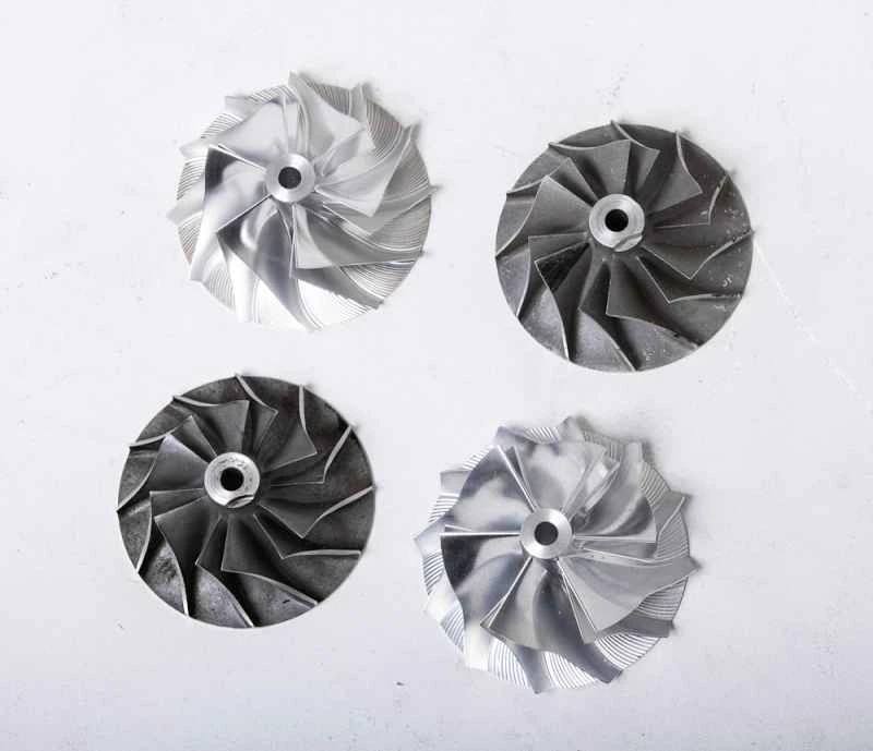現在、大口径のインテークブレードを製造する方法としては、CNC加工によるアルミインゴットの鍛造が一般的です。この鍛造ブレードは、軽量、高強度、金型不要で大量生産が可能という利点がありますが、ブレード単価が高いという欠点があります。ターボチャージャー自体のサイズと容量以外にも、A/R 比もブースト応答に影響を与える重要なパラメータです。A はターボチャージャーの排気ポートの直径、R は吸気タービンの中心から排気ポートの中心までの距離に等しくなります。ターボチャージャーの排気ポートの内径が 50mm、吸気インペラから排気ポートの中心までの距離が 62.5mm の場合、A/R 比は 0.8 になります。この値は、ブーストのタイミングと高速出力のパフォーマンスに関係します。一般的に、A/R 比が小さいターボチャージャーは、低速域でのブースト応答が速くなりますが、回転数が上昇すると出口抵抗によって出力が制限されます。逆に、A/R 比が大きいターボチャージャーは、低速域での応答が悪くなりますが、回転数が上昇するとより多くの空気を供給できます。