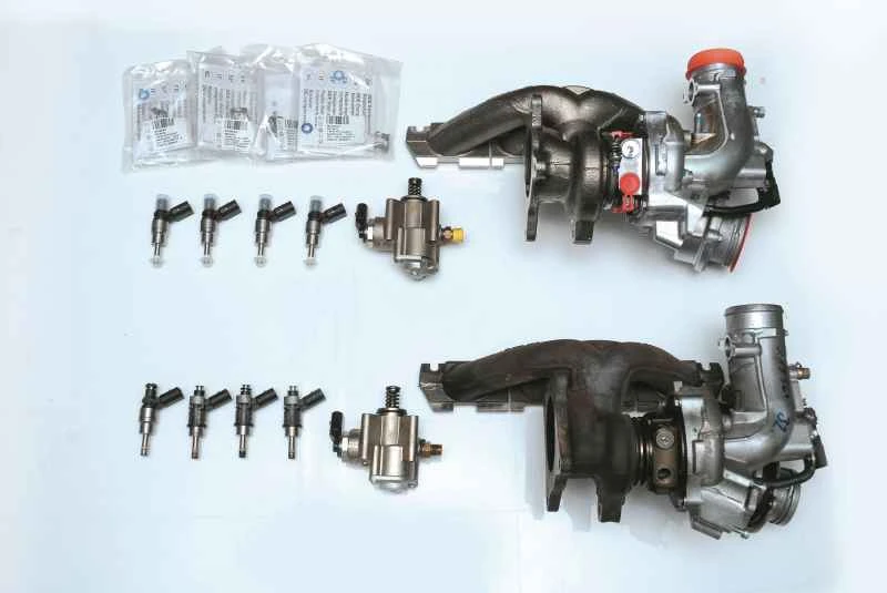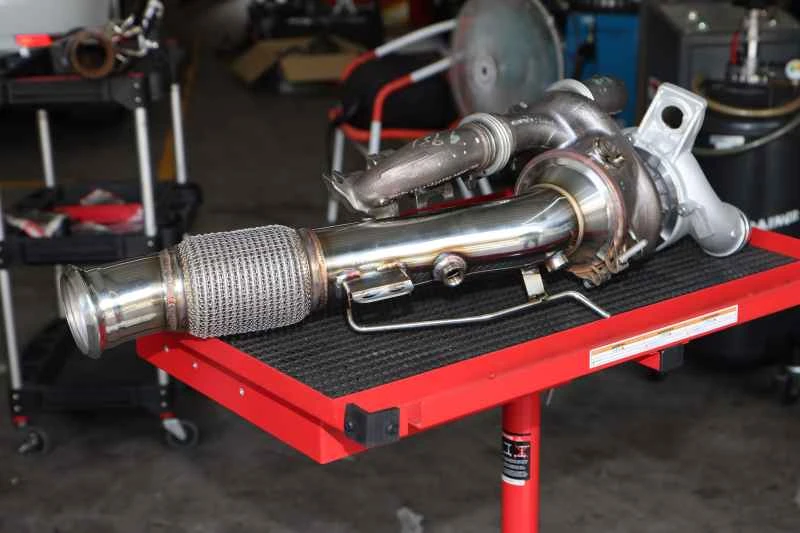 ターボチャージャーをアップグレードした後は、ターボチャージャーと中間排気管をつなぐダウンパイプをストレートタイプに交換する必要があります。これは、このパイプに純正触媒コンバーターが設置されているため、高温の排気ガスが滞留する可能性があるためです。排気ガスの排出性を改善する対策を講じないと、排気温度が過度に上昇し、エンジンまたは触媒コンバーターに損傷を与える可能性があります。もう一つの理由は加速性能の向上です。これは基本的に、同じ時間内にシリンダーにより多くのガスを送り込むことを意味します。しかし、ターボチャージャーを大型化すると、シリンダーからの排気ガスが不足し、ターボチャージャーが最大ブースト圧に達することができないため、低回転域でエンジンラグが発生する可能性があります。この現象はターボチャージャーの大型化によって顕著に増幅されるため、ドライバーにとって非常に厄介な問題となります。いずれにせよ、ターボチャージャー付きエンジンで純正ターボチャージャーの限界を突破し、さらなる高出力化を目指すのであれば、大型ターボチャージャーへの交換は不可欠です。改造方法やターボチャージャーのサイズ調整については、引き続きご説明いたします。
