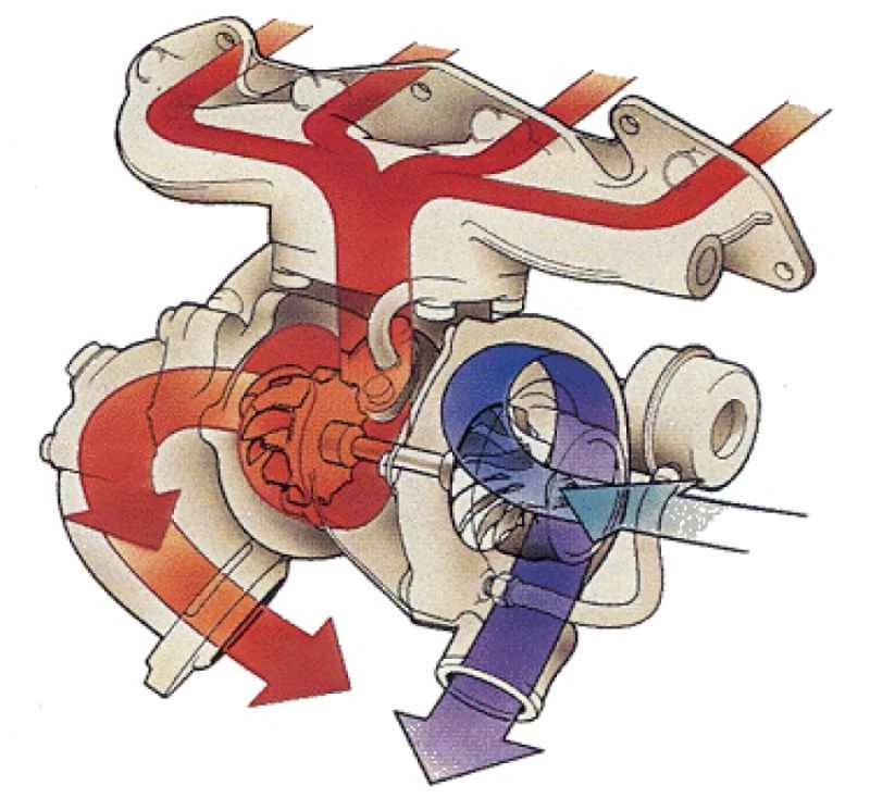 なぜターボチャージャー付きエンジンは、同じ排気量の自然吸気エンジンよりも高い出力を発揮するのでしょうか?それは、ターボチャージャー付きエンジンは燃焼室に多くの空気を取り込むため、より多くの馬力を引き出せるからです。その動作は次のようになります。まず、エンジンの排気ガスが排気側タービン(駆動輪)に排出されます。排気ガスは排気ブレードを押した後、フロントパイプに入り、ミッドからリアにかけての排気マニホールドに排出されます。