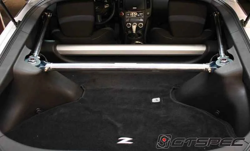 リアトランク開口部もボディ剛性の強化が必要な箇所です。リアショックアブソーバータワー上部にタイロッドを追加することで、車体の剛性を大幅に向上させ、走行中のショックアブソーバーの安定性も確保しています。
