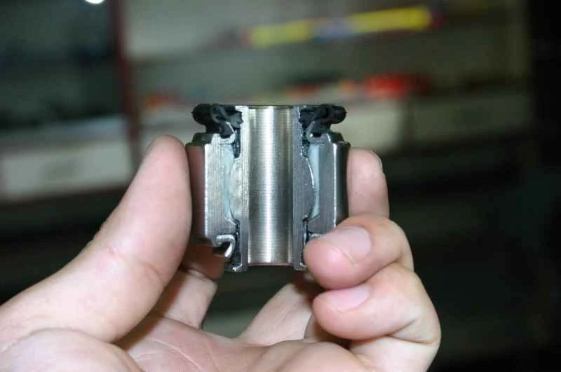 フィッシュアイの金属製外輪と鋼製ボールベアリングアセンブリの間には、「ライナー」と呼ばれる自己潤滑性でオイルフリーのライナーが配置されています。フィッシュアイの耐久性はこのライナーに大きく依存しています。一般的な機械の多くは銅被覆ライナーを使用していますが、レーシングカーではテフロン製のライナーが使用され、さらに高級モデルではテフロンとダクロンの混合ライナーが使用されています。正面衝突の結果