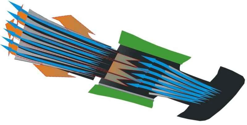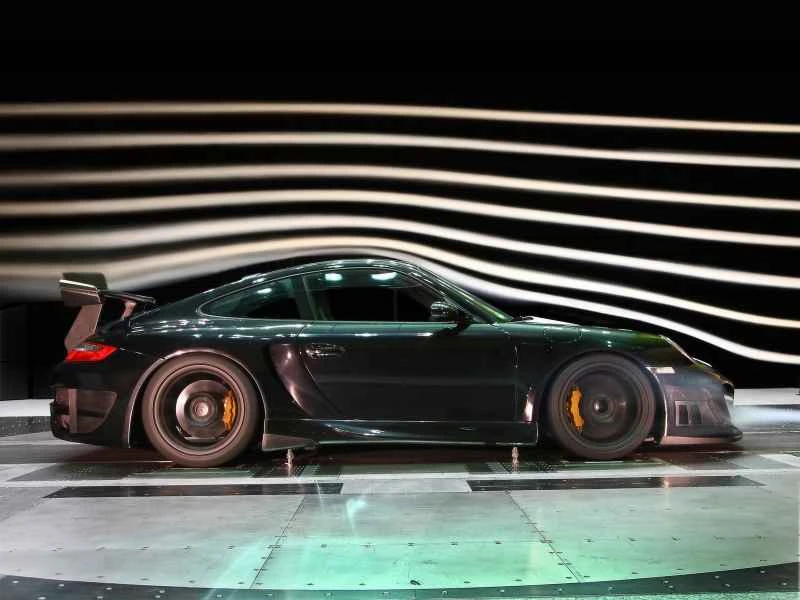 この写真は、リアウィングの乱流効果がいかに強力であるかを如実に示しています。車体後方の気流はウィングによって複雑になるため、低馬力車の場合は燃料の無駄遣いやパワーダウンを防ぐために、大型のリアウィングを装着しないことをお勧めします。この空気力を効果的に利用し、高速走行時の車体後部の安定性を高め、後輪が路面にしっかりと接地し続けるように、レーシングエンジニアはリアウイングを設計しました。その役割は、車に4つ目の力、トラクションフォースを生み出すことです。この力は揚力の一部を相殺し、車が地面から浮き上がるのを防ぎ、路面との接触を防いで安定性を向上させます。これはF1レースにも見られ、すべてのF1マシンにはフロントとリアにウイングが装備されています。これらのウイングはダウンフォースの約60%を供給し、時速300kmを超える速度でも十分なタイヤグリップを確保して安定性を維持し、スムーズなレーンチェンジや追い越しを可能にします。