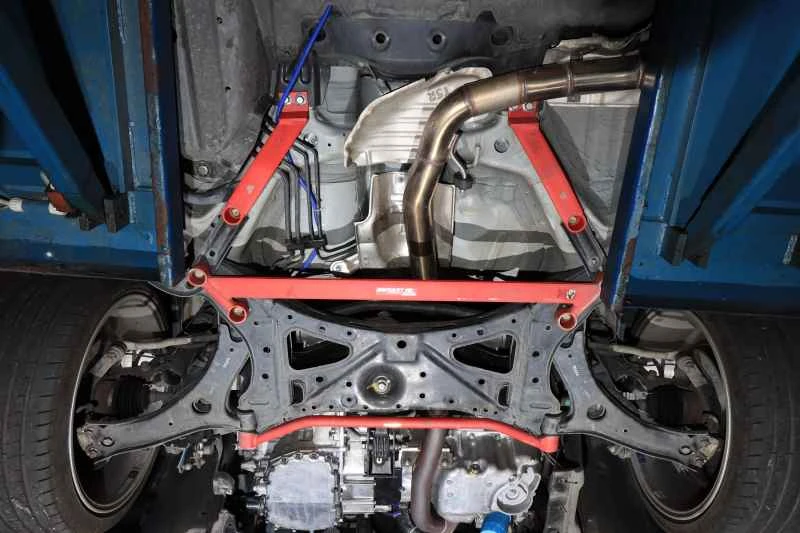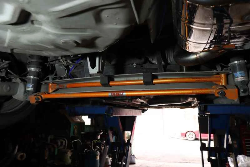 外観上、タイロッドは長さの異なる直線状のロッドがほとんどで、両側に固定ポイントがあります。少数ですが、構造板状のものもあります。固定ポイントは多様で、通常はフロントIビーム下、排気管下、リアサスペンション構造など、車体構造の開口部にあります。重要な点は、固定ポイントが移動や回転しないポイントであることです。タイロッドは車体の剛性を強化するために使用されるため、これは非常に重要です。移動するポイントに固定すると、車体を強化する効果を発揮できません。ロールケージと同様に、車体にしっかりと固定されて初めて機能します。