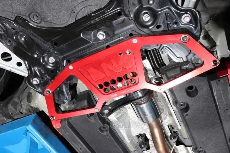 タイロッドのほとんどは直線状のロッドで、長さは様々で、両側にロックポイントがあります。少数ですが、構造板状のものもあります。固定ポイントは多様で、通常は車両構造の開口部、例えばフロントIビーム下、排気管下、またはリアサスペンション構造などに設置されます。重要な点は、固定ポイントが移動したり回転したりしない点です。最も一般的なフロントIビームクロスバーを例に挙げると、Iビームの四隅に合計4つの固定点があります。これらの4点は、フロントトライポッドがIビームに固定される位置とも一致しています。構造全体はクロスバーの形状を呈しており、クロスバー自体は動きません。その機能は、車両前部下部のIビームの剛性を強化することです。これにより、両側のトライポッドが動く際にIビームの変形を効果的に抑制し、トライポッドの上下動時の安定性を高め、アグレッシブな走行時のハンドリングレスポンスにも貢献します。