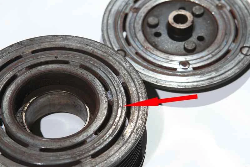 しかし、コンプレッサーの潤滑が不十分だったり、冷媒が適切に冷却されていなかったり、配管内の圧力が高すぎたりすると、コンプレッサーの回転抵抗が大幅に増加します。ひどい場合には、特にエンジン回転数が比較的高いときに電磁クラッチが滑ります。クラッチを繋ぐと滑りの問題が悪化し、高熱が発生します。最終的には、クラッチの電磁コイルが過熱により損傷します。この時点で、コンプレッサーは作動できなくなり、エアコンは冷えなくなります。これを判断する方法は非常に簡単です。エアコンボタンを押したときにエンジンルームからカチッという音が聞こえない場合、またはエンジン回転数が変動しない場合は、クラッチアセンブリが接続されていないことを意味します。