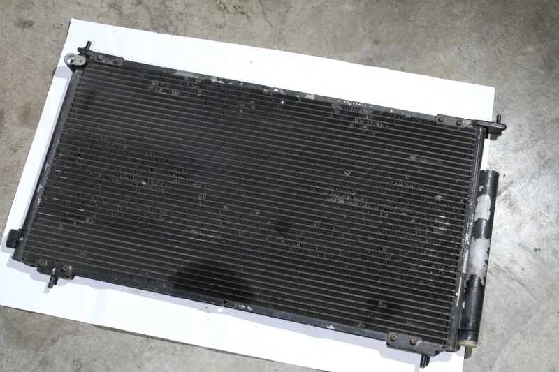 このラジエーターは2代目CR-Vの純正部品です。約6年使用されており、フィンはひどく脆くなっています。指で軽く押すだけでフィン列全体が潰れてしまうほどで、高圧水噴射で吹き付けるとひどい状態になります。フィンがなければ、ラジエーターは放熱に全く役に立ちません。空調システムの2番目の必須検査項目:冷媒レベルは十分ですか?