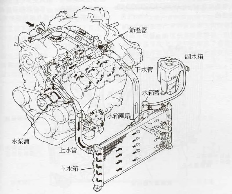 水温が徐々に上昇し、80℃を超えるとサーモスタットが開き始め、冷却水が水タンクに流れ込み、空冷されます。これが大循環、つまり外部循環段階です。つまり、サーモスタットは冷却水の流れ方向を制御するスイッチのようなものです。